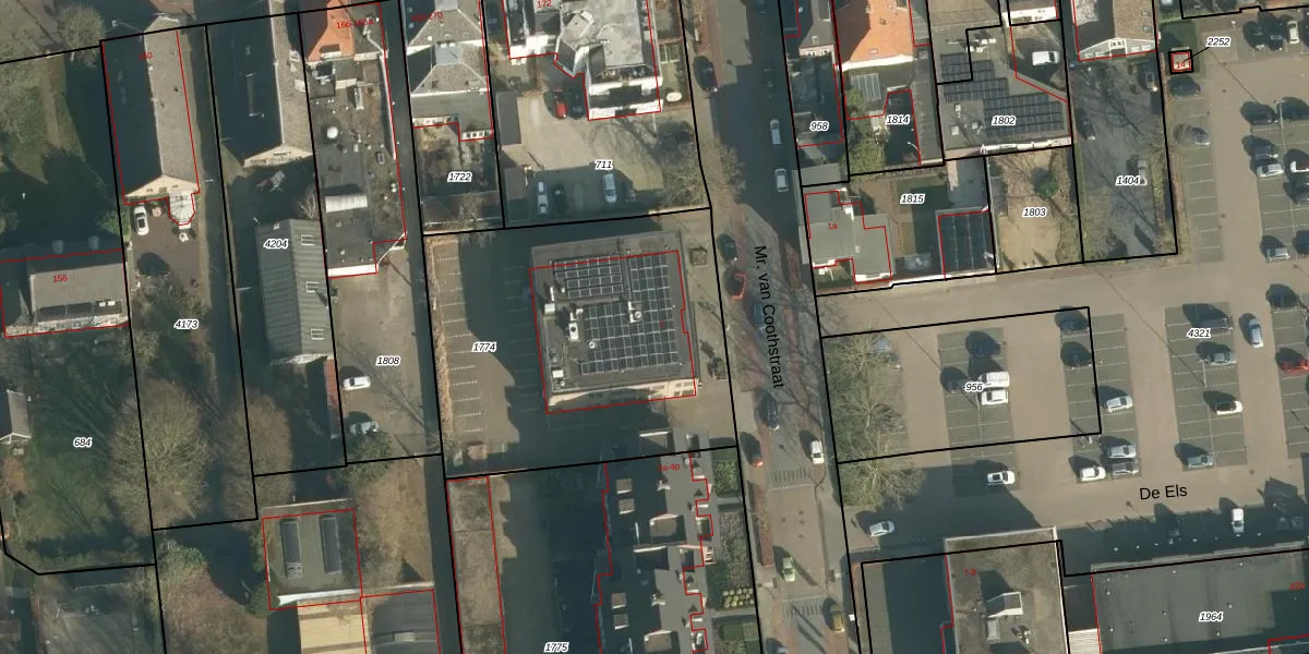 Het perceel waarop Mr. van Coothstraat 2 staat heeft een oppervlakte van 1645 m². Dit is een zeer groot perceel. De perceeloppervlakte wordt geregistreerd door het Kadaster. Gedetailleerde informatie over de maten van dit perceel kunt u vinden in het rapport Kadastrale kaart met maatvoering van Mr. van Coothstraat 2.