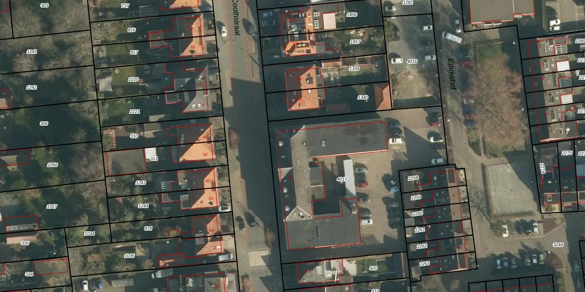 Het perceel waarop Mr. van Coothstraat 55-24 staat heeft een oppervlakte van 2441 m². Dit is een zeer groot perceel. De perceeloppervlakte wordt geregistreerd door het Kadaster. Gedetailleerde informatie over de maten van dit perceel kunt u vinden in het rapport Kadastrale kaart met maatvoering van Mr. van Coothstraat 55-24.