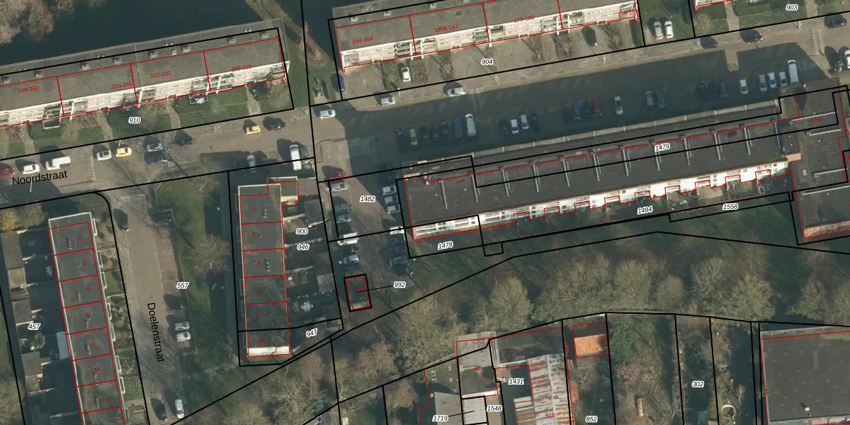 Het perceel waarop Noordstraat 39 staat heeft een oppervlakte van 1455 m². Dit is een zeer groot perceel. De perceeloppervlakte wordt geregistreerd door het Kadaster. Gedetailleerde informatie over de maten van dit perceel kunt u vinden in het rapport Kadastrale kaart met maatvoering van Noordstraat 39.