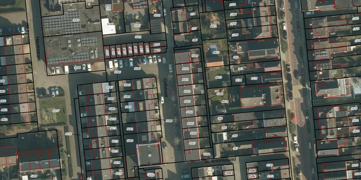 Het perceel waarop Orffstraat 7 staat heeft een oppervlakte van 87 m². Dit is een klein perceel. De perceeloppervlakte wordt geregistreerd door het Kadaster. Gedetailleerde informatie over de maten van dit perceel kunt u vinden in het rapport Kadastrale kaart met maatvoering van Orffstraat 7.