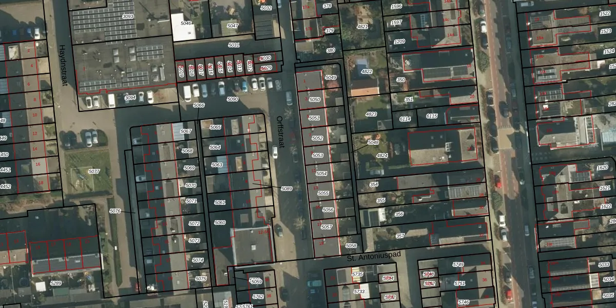 Orffstraat 9 is gelegen op kadastraal perceel WWK00E5053. Deze kadastrale aanduiding is uniek en wordt gebruikt door het Kadaster om eigendomsrechten en andere zakelijke rechten vast te leggen. Het perceel maakt onderdeel uit van de kadastrale gemeente Waalwijk.