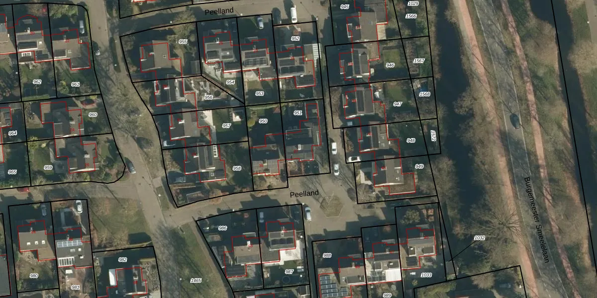 Het perceel waarop Peelland 37 staat heeft een oppervlakte van 364 m². Dit is een groot perceel. De perceeloppervlakte wordt geregistreerd door het Kadaster. Gedetailleerde informatie over de maten van dit perceel kunt u vinden in het rapport Kadastrale kaart met maatvoering van Peelland 37.