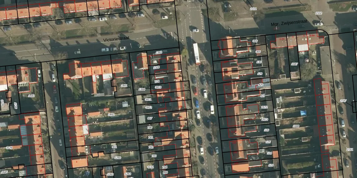 Gebruik de zoekbalk of klik op een perceel voor informatie over de adressen binnen dit perceel.