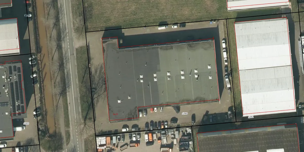 Het perceel waarop het adres ligt is WWK00-A-1260. De afkorting 'WWK00' staat voor kadastrale gemeente Waalwijk. De oppervlakte van het perceel is 6340 m². Dat is groter dan gemiddeld in Waalwijk, waar de gemiddelde perceeloppervlakte op 1674,89 m² ligt. Het kleinste perceel in de kadastrale gemeente is 0 m² groot. De grootste perceeloppervlakte is 57,3 ha. Op het perceel liggen in totaal 21 adressen. De laatste wijziging in het de Basisregistratie Kadaster (BRK) was op 24-03-2006.