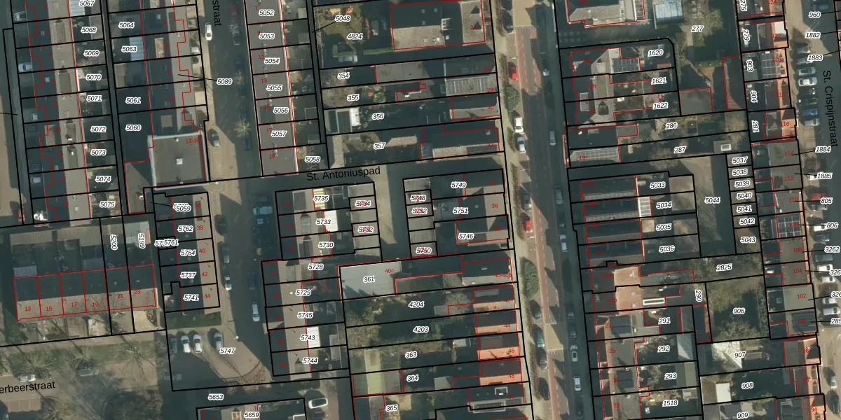 Het perceel waarop St. Antoniusstraat 32-b staat heeft een oppervlakte van 19 m². Dit is een klein perceel. De perceeloppervlakte wordt geregistreerd door het Kadaster. Gedetailleerde informatie over de maten van dit perceel kunt u vinden in het rapport Kadastrale kaart met maatvoering van St. Antoniusstraat 32-b.
