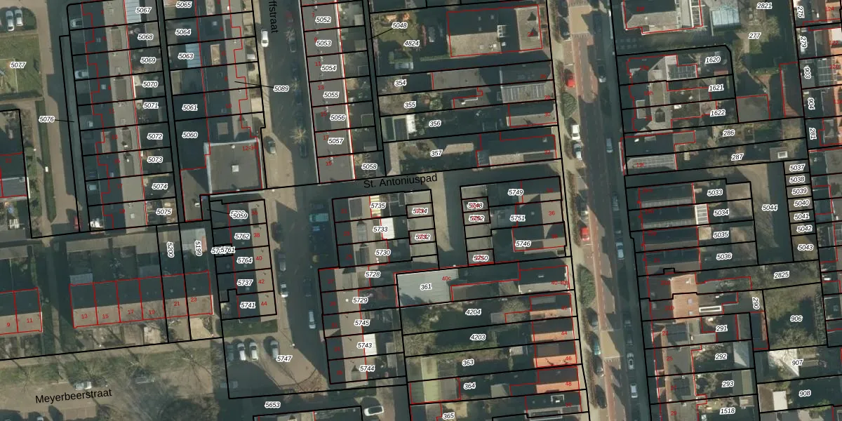 Het perceel waarop St. Antoniusstraat 32-e staat heeft een oppervlakte van 19 m². Dit is een klein perceel. De perceeloppervlakte wordt geregistreerd door het Kadaster. Gedetailleerde informatie over de maten van dit perceel kunt u vinden in het rapport Kadastrale kaart met maatvoering van St. Antoniusstraat 32-e.