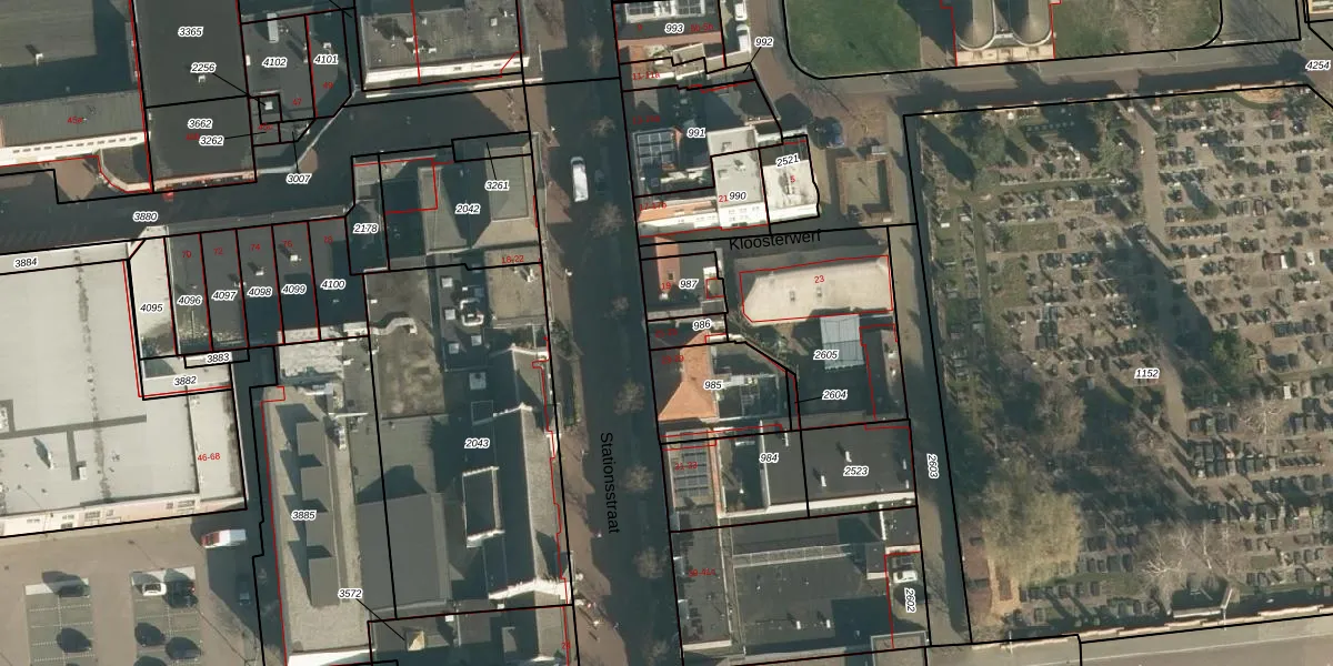 Het perceel waarop Stationsstraat 25 staat heeft een oppervlakte van 50 m². Dit is een klein perceel. De perceeloppervlakte wordt geregistreerd door het Kadaster. Gedetailleerde informatie over de maten van dit perceel kunt u vinden in het rapport Kadastrale kaart met maatvoering van Stationsstraat 25.