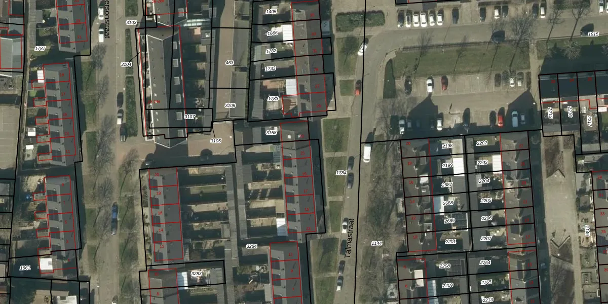 Het perceel waarop Talmastraat 21 staat heeft een oppervlakte van 3400 m². Dit is een zeer groot perceel. De perceeloppervlakte wordt geregistreerd door het Kadaster. Gedetailleerde informatie over de maten van dit perceel kunt u vinden in het rapport Kadastrale kaart met maatvoering van Talmastraat 21.