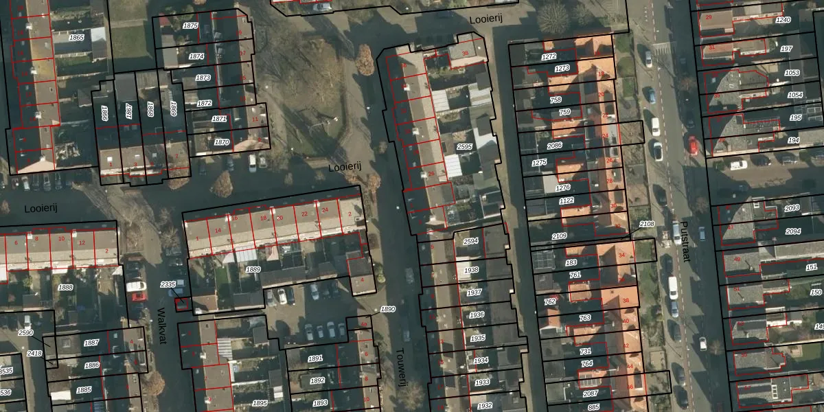 Touwerij 1 is gelegen op kadastraal perceel WWK00D2595. Deze kadastrale aanduiding is uniek en wordt gebruikt door het Kadaster om eigendomsrechten en andere zakelijke rechten vast te leggen. Het perceel maakt onderdeel uit van de kadastrale gemeente Waalwijk.