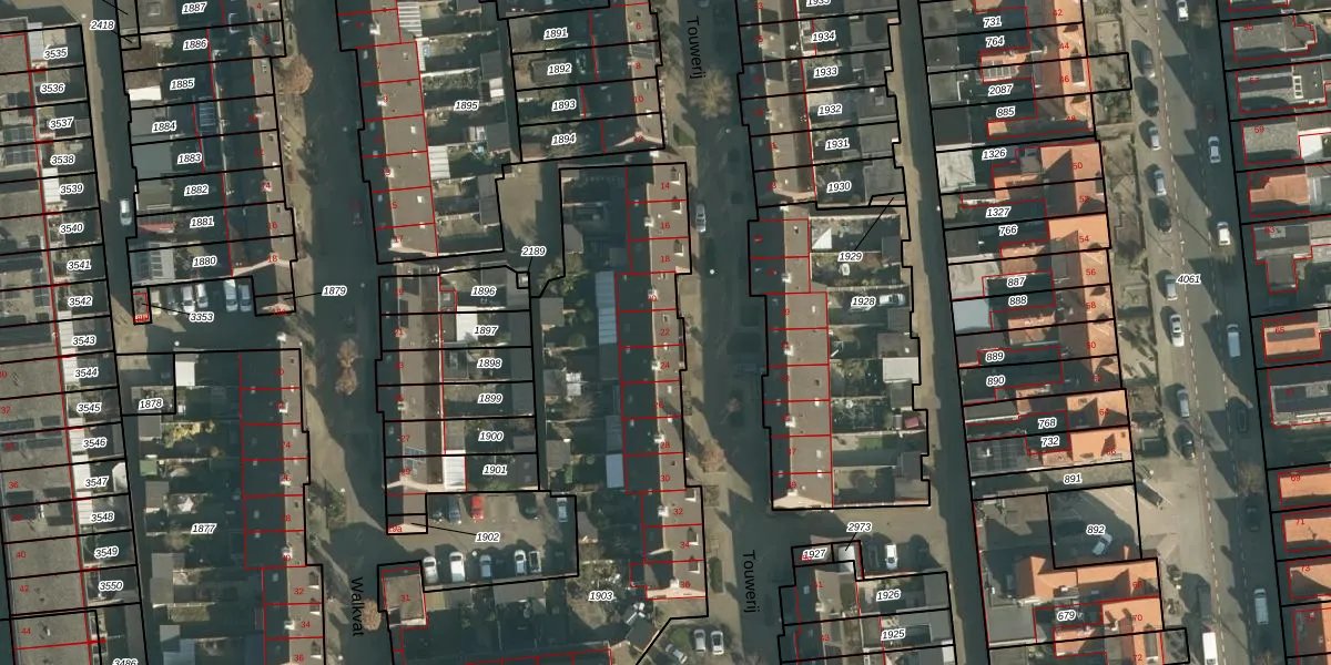 Het perceel waarop Touwerij 22 staat heeft een oppervlakte van 2327 m². Dit is een zeer groot perceel. De perceeloppervlakte wordt geregistreerd door het Kadaster. Gedetailleerde informatie over de maten van dit perceel kunt u vinden in het rapport Kadastrale kaart met maatvoering van Touwerij 22.