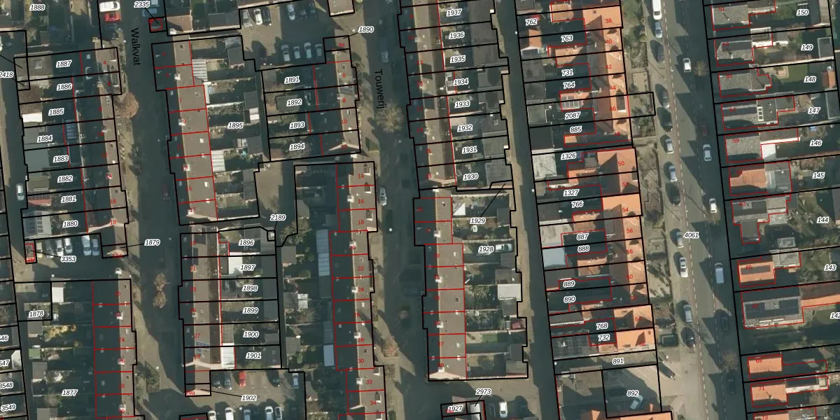 Het perceel waarop Touwerij 25 staat heeft een oppervlakte van 1052 m². Dit is een zeer groot perceel. De perceeloppervlakte wordt geregistreerd door het Kadaster. Gedetailleerde informatie over de maten van dit perceel kunt u vinden in het rapport Kadastrale kaart met maatvoering van Touwerij 25.