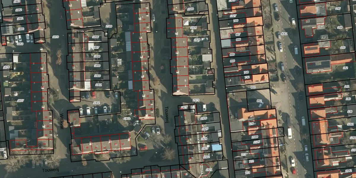 Het perceel waarop Touwerij 39 staat heeft een oppervlakte van 1052 m². Dit is een zeer groot perceel. De perceeloppervlakte wordt geregistreerd door het Kadaster. Gedetailleerde informatie over de maten van dit perceel kunt u vinden in het rapport Kadastrale kaart met maatvoering van Touwerij 39.