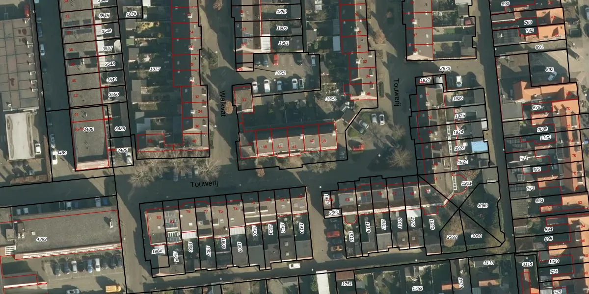 Het perceel waarop Touwerij 42 staat heeft een oppervlakte van 2327 m². Dit is een zeer groot perceel. De perceeloppervlakte wordt geregistreerd door het Kadaster. Gedetailleerde informatie over de maten van dit perceel kunt u vinden in het rapport Kadastrale kaart met maatvoering van Touwerij 42.