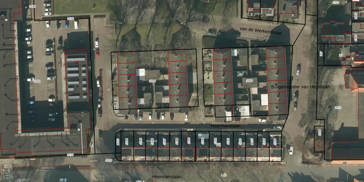 Het perceel waarop van Vessemstraat 20 staat heeft een oppervlakte van 1477 m². Dit is een zeer groot perceel. De perceeloppervlakte wordt geregistreerd door het Kadaster. Gedetailleerde informatie over de maten van dit perceel kunt u vinden in het rapport Kadastrale kaart met maatvoering van van Vessemstraat 20.