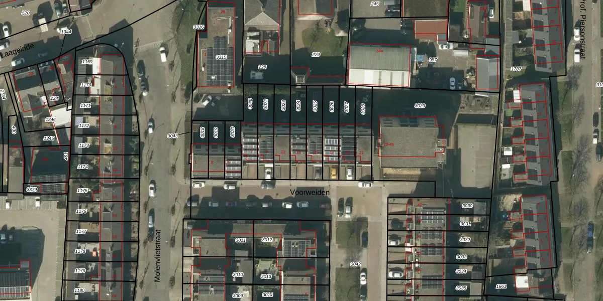 Het perceel waarop Voorweiden 13 staat heeft een oppervlakte van 169 m². Dit is een middelgroot perceel. De perceeloppervlakte wordt geregistreerd door het Kadaster. Gedetailleerde informatie over de maten van dit perceel kunt u vinden in het rapport Kadastrale kaart met maatvoering van Voorweiden 13.
