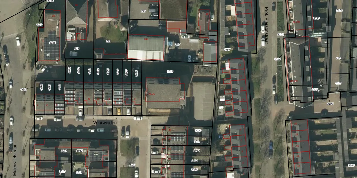Het perceel waarop Voorweiden 43 staat heeft een oppervlakte van 1351 m². Dit is een zeer groot perceel. De perceeloppervlakte wordt geregistreerd door het Kadaster. Gedetailleerde informatie over de maten van dit perceel kunt u vinden in het rapport Kadastrale kaart met maatvoering van Voorweiden 43.