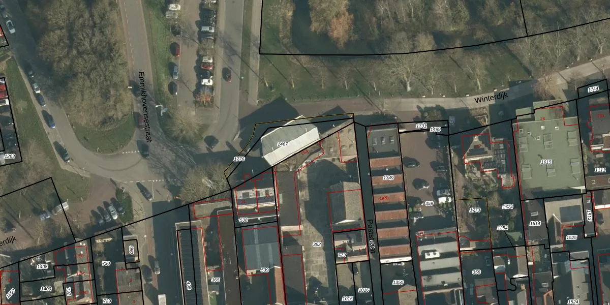 Het perceel waarop Winterdijk 25-a staat heeft een oppervlakte van 1654 m². Dit is een zeer groot perceel. De perceeloppervlakte wordt geregistreerd door het Kadaster. Gedetailleerde informatie over de maten van dit perceel kunt u vinden in het rapport Kadastrale kaart met maatvoering van Winterdijk 25-a.