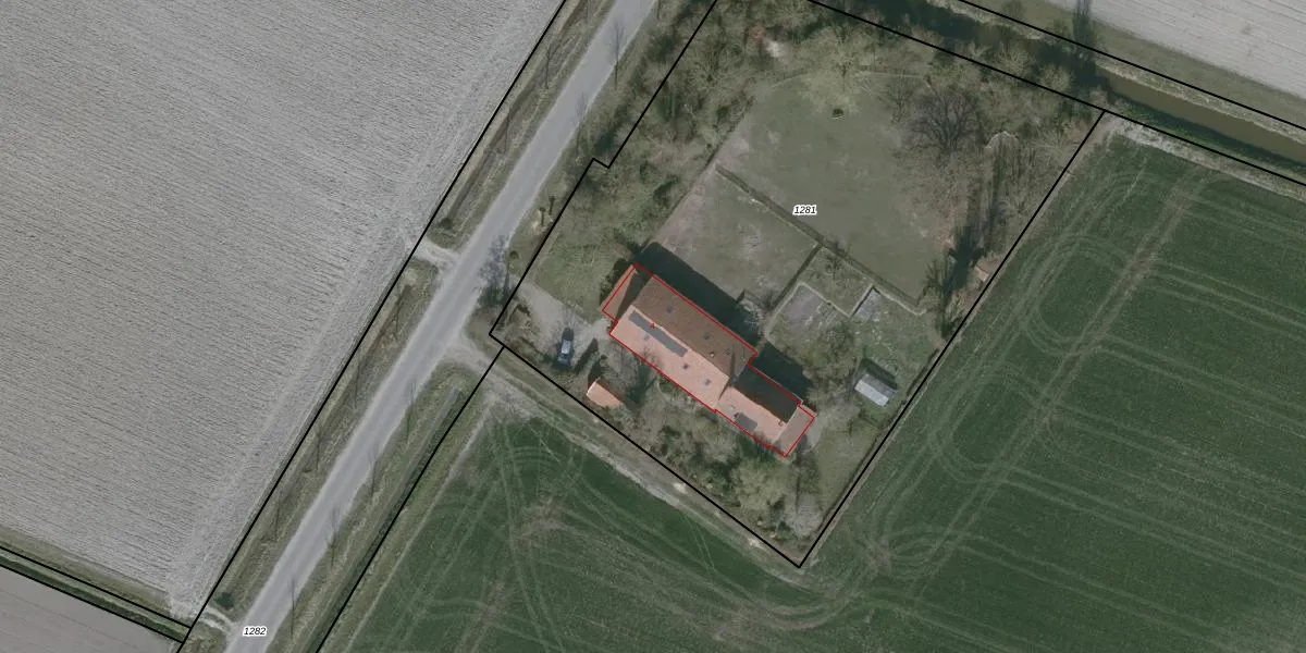 Het perceel waarop het adres ligt is WDE01-E-1281. De afkorting 'WDE01' staat voor kadastrale gemeente Waarde. Het perceel is 4443 m² groot. Dat is kleiner dan de gemiddelde perceeloppervlakte in Waarde, dat op 6486,9 m² ligt. Het kleinste perceel in de kadastrale gemeente is 1 m² groot. De grootste perceeloppervlakte is 27,0 ha. Er zijn geen andere adressen aanwezig op het perceel. In de Basisregistratie Kadaster (BRK) werden de grenzen van het perceel geregistreerd op 02-09-2011.