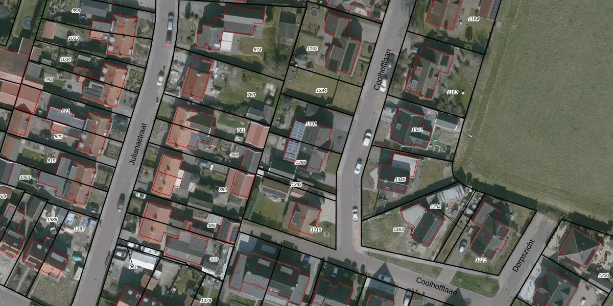 Het perceel waarop Coolhofflaan 19 staat heeft een oppervlakte van 320 m². Dit is een groot perceel. De perceeloppervlakte wordt geregistreerd door het Kadaster. Gedetailleerde informatie over de maten van dit perceel kunt u vinden in het rapport Kadastrale kaart met maatvoering van Coolhofflaan 19.