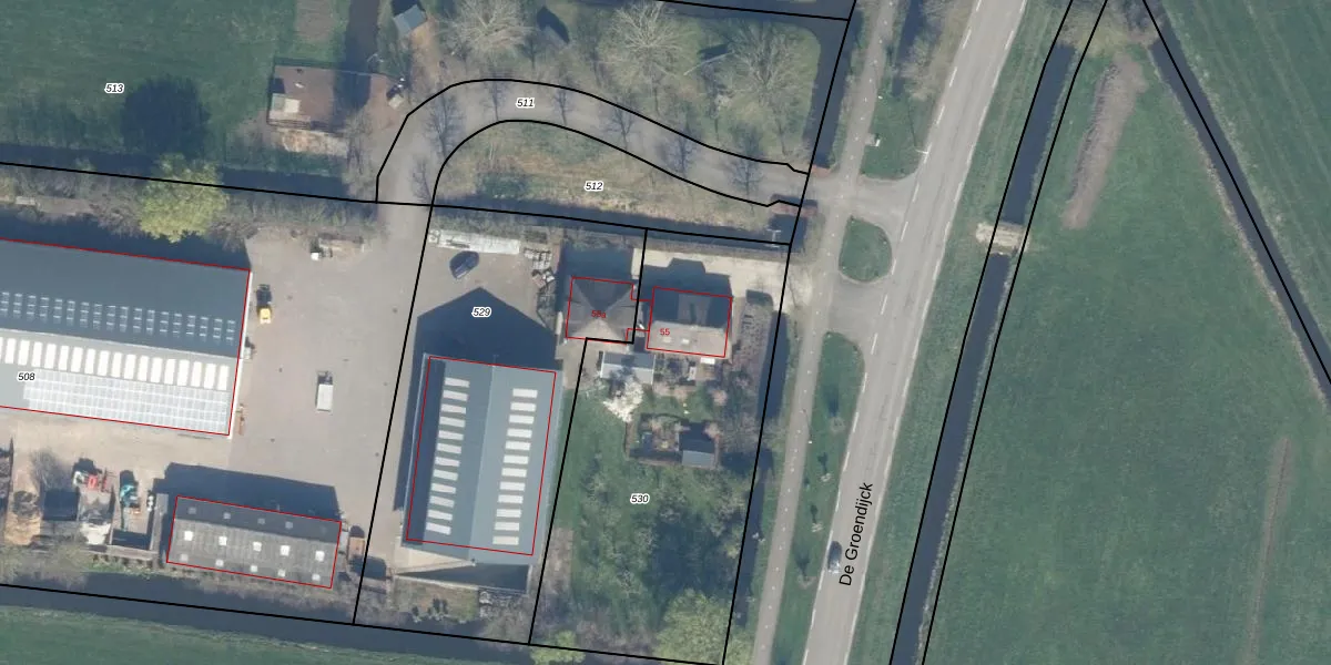 De Groendijck 55 is gelegen op kadastraal perceel WDR02C530. Deze kadastrale aanduiding is uniek en wordt gebruikt door het Kadaster om eigendomsrechten en andere zakelijke rechten vast te leggen. Het perceel maakt onderdeel uit van de kadastrale gemeente Waarder.