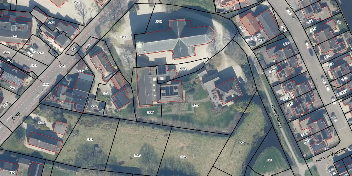Het perceel waarop Dorp 13 staat heeft een oppervlakte van 1656 m². Dit is een zeer groot perceel. De perceeloppervlakte wordt geregistreerd door het Kadaster. Gedetailleerde informatie over de maten van dit perceel kunt u vinden in het rapport Kadastrale kaart met maatvoering van Dorp 13.