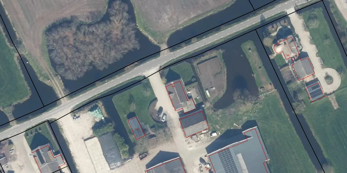 Het perceel waarop Oosteinde 54 staat heeft een oppervlakte van 11,7 ha. Dit is een zeer groot perceel. De perceeloppervlakte wordt geregistreerd door het Kadaster. Gedetailleerde informatie over de maten van dit perceel kunt u vinden in het rapport Kadastrale kaart met maatvoering van Oosteinde 54.