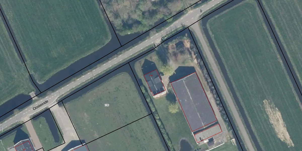 Het perceel waarop Oosteinde 64-a staat heeft een oppervlakte van 4,6 ha. Dit is een zeer groot perceel. De perceeloppervlakte wordt geregistreerd door het Kadaster. Gedetailleerde informatie over de maten van dit perceel kunt u vinden in het rapport Kadastrale kaart met maatvoering van Oosteinde 64-a.