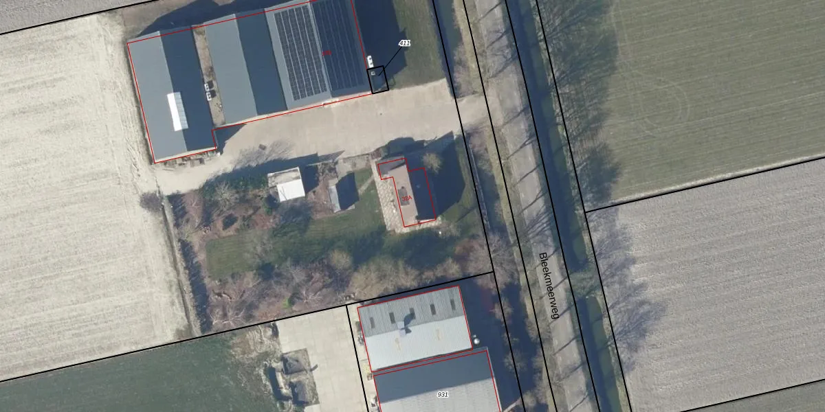 Het perceel waarop Bleekmeerweg 32-A staat heeft een oppervlakte van 2,2 ha. Dit is een zeer groot perceel. De perceeloppervlakte wordt geregistreerd door het Kadaster. Gedetailleerde informatie over de maten van dit perceel kunt u vinden in het rapport Kadastrale kaart met maatvoering van Bleekmeerweg 32-A.