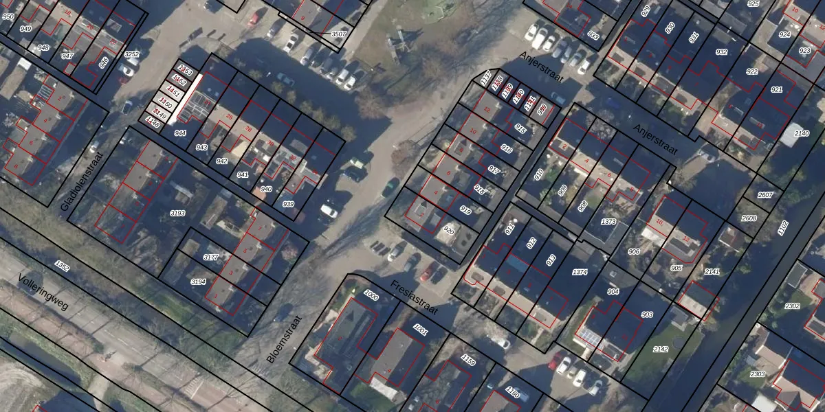 Het perceel waarop Bloemstraat 2 staat heeft een oppervlakte van 193 m². Dit is een middelgroot perceel. De perceeloppervlakte wordt geregistreerd door het Kadaster. Gedetailleerde informatie over de maten van dit perceel kunt u vinden in het rapport Kadastrale kaart met maatvoering van Bloemstraat 2.