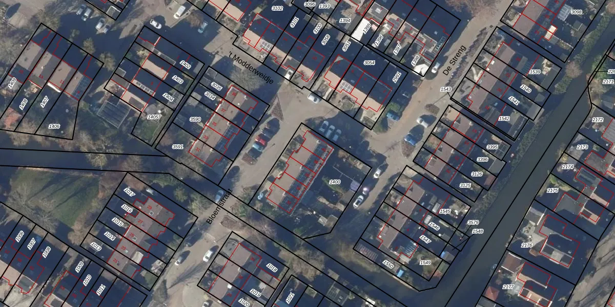 Het perceel waarop Bloemstraat 38 staat heeft een oppervlakte van 833 m². Dit is een groot perceel. De perceeloppervlakte wordt geregistreerd door het Kadaster. Gedetailleerde informatie over de maten van dit perceel kunt u vinden in het rapport Kadastrale kaart met maatvoering van Bloemstraat 38.