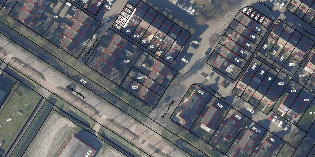 Het perceel waarop Bloemstraat 5 staat heeft een oppervlakte van 1043 m². Dit is een zeer groot perceel. De perceeloppervlakte wordt geregistreerd door het Kadaster. Gedetailleerde informatie over de maten van dit perceel kunt u vinden in het rapport Kadastrale kaart met maatvoering van Bloemstraat 5.