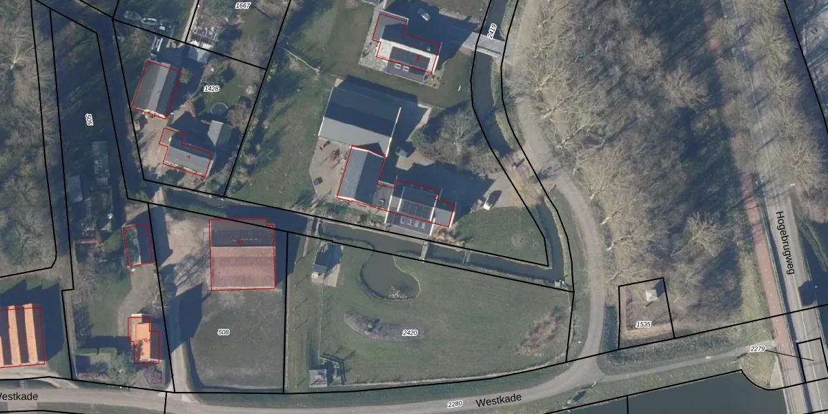 Het perceel waarop Westkade 2 staat heeft een oppervlakte van 8920 m². Dit is een zeer groot perceel. De perceeloppervlakte wordt geregistreerd door het Kadaster. Gedetailleerde informatie over de maten van dit perceel kunt u vinden in het rapport Kadastrale kaart met maatvoering van Westkade 2.