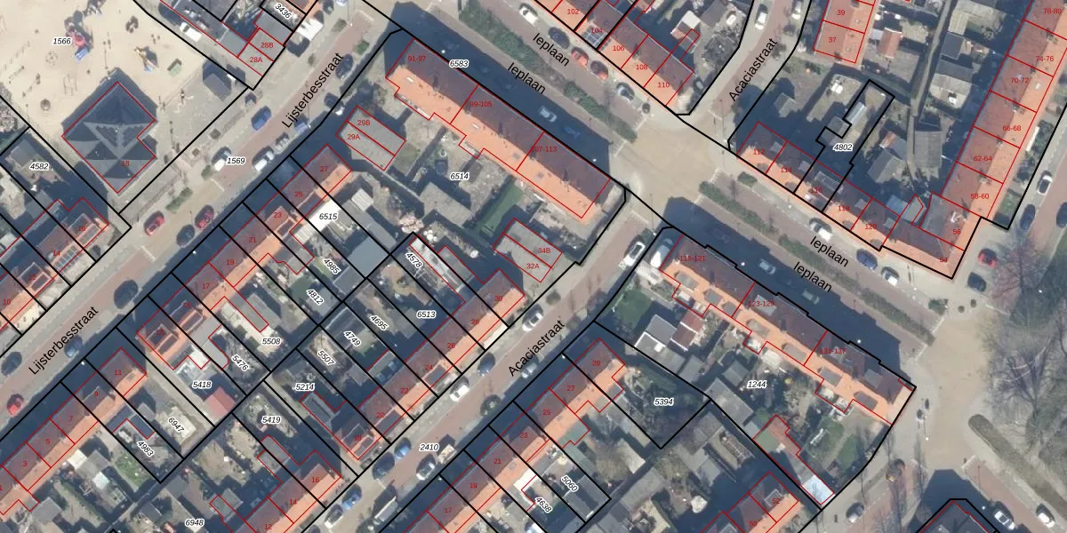 Acaciastraat 32-A is gelegen op kadastraal perceel WDV01C6514. Deze kadastrale aanduiding is uniek en wordt gebruikt door het Kadaster om eigendomsrechten en andere zakelijke rechten vast te leggen. Het perceel maakt onderdeel uit van de kadastrale gemeente Waddinxveen.
