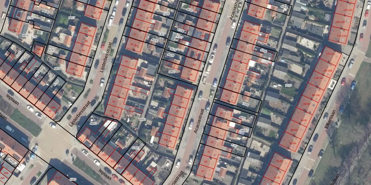 Het perceel waarop Acaciastraat 46 staat heeft een oppervlakte van 2737 m². Dit is een zeer groot perceel. De perceeloppervlakte wordt geregistreerd door het Kadaster. Gedetailleerde informatie over de maten van dit perceel kunt u vinden in het rapport Kadastrale kaart met maatvoering van Acaciastraat 46.