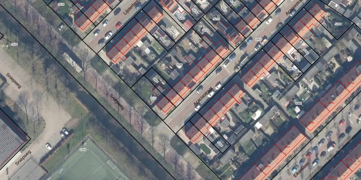 Acaciastraat 6 is gelegen op kadastraal perceel WDV01C6948. Deze kadastrale aanduiding is uniek en wordt gebruikt door het Kadaster om eigendomsrechten en andere zakelijke rechten vast te leggen. Het perceel maakt onderdeel uit van de kadastrale gemeente Waddinxveen.