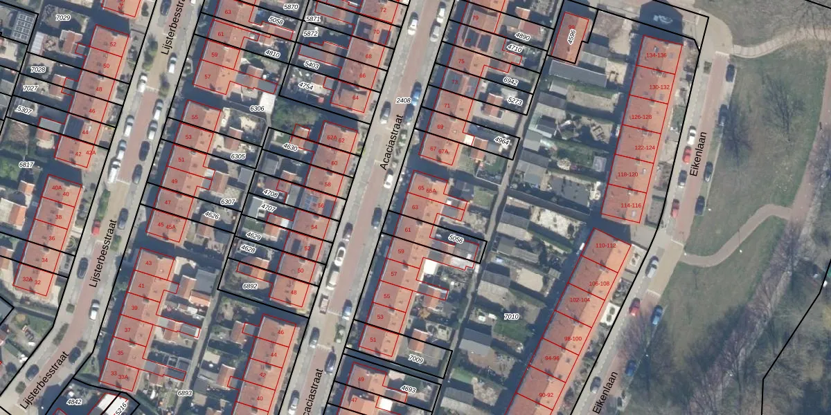 Het perceel waarop Acaciastraat 63 staat heeft een oppervlakte van 7673 m². Dit is een zeer groot perceel. De perceeloppervlakte wordt geregistreerd door het Kadaster. Gedetailleerde informatie over de maten van dit perceel kunt u vinden in het rapport Kadastrale kaart met maatvoering van Acaciastraat 63.