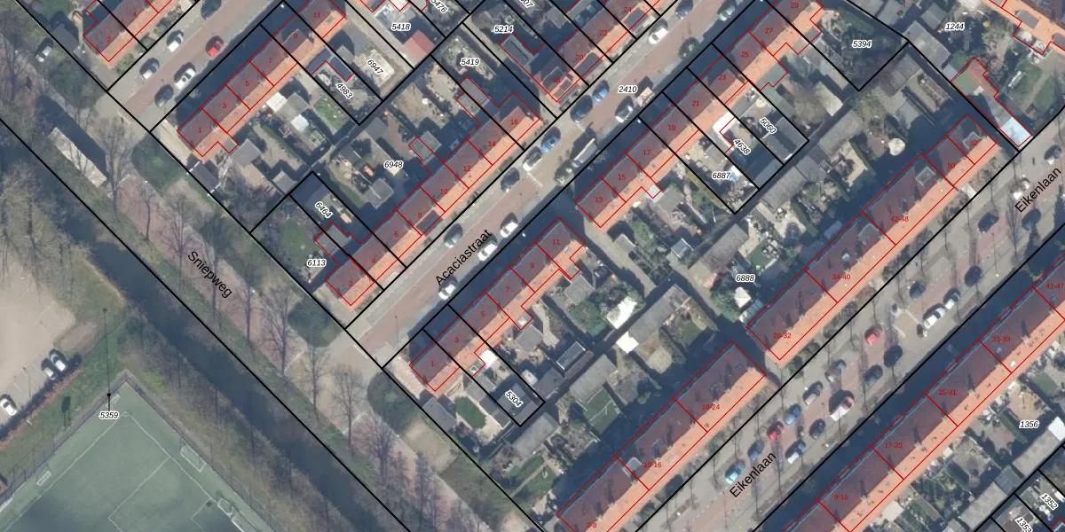Het perceel waarop Acaciastraat 9 staat heeft een oppervlakte van 5258 m². Dit is een zeer groot perceel. De perceeloppervlakte wordt geregistreerd door het Kadaster. Gedetailleerde informatie over de maten van dit perceel kunt u vinden in het rapport Kadastrale kaart met maatvoering van Acaciastraat 9.