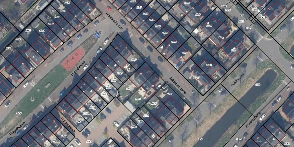 Het perceel waarop Adrianahoeve 6 staat heeft een oppervlakte van 283 m². Dit is een middelgroot perceel. De perceeloppervlakte wordt geregistreerd door het Kadaster. Gedetailleerde informatie over de maten van dit perceel kunt u vinden in het rapport Kadastrale kaart met maatvoering van Adrianahoeve 6.