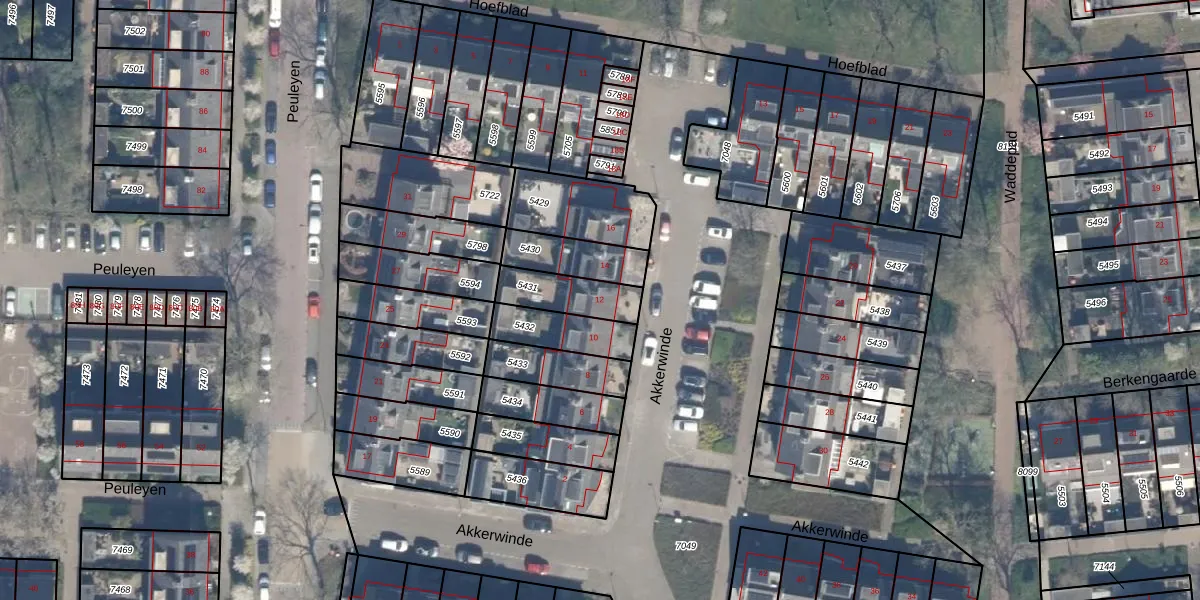 Akkerwinde 12 is gelegen op kadastraal perceel WDV01B5431. Deze kadastrale aanduiding is uniek en wordt gebruikt door het Kadaster om eigendomsrechten en andere zakelijke rechten vast te leggen. Het perceel maakt onderdeel uit van de kadastrale gemeente Waddinxveen.