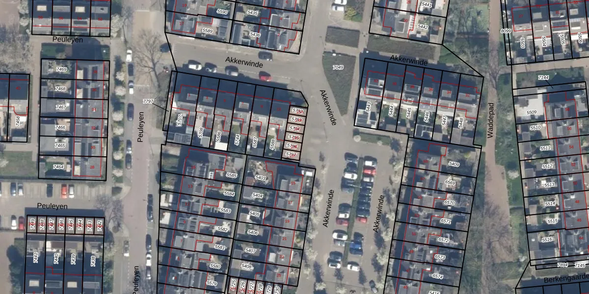 Akkerwinde 13-E is gelegen op kadastraal perceel WDV01B5796. Deze kadastrale aanduiding is uniek en wordt gebruikt door het Kadaster om eigendomsrechten en andere zakelijke rechten vast te leggen. Het perceel maakt onderdeel uit van de kadastrale gemeente Waddinxveen.
