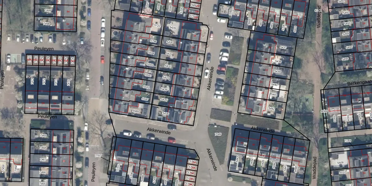 Gebruik de zoekbalk of klik op een perceel voor informatie over de adressen binnen dit perceel.