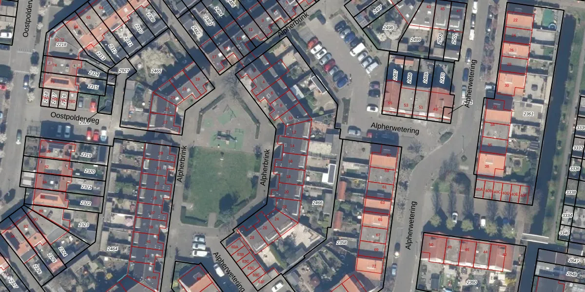 Alpherbrink 14 is gelegen op kadastraal perceel WDV01D2466. Deze kadastrale aanduiding is uniek en wordt gebruikt door het Kadaster om eigendomsrechten en andere zakelijke rechten vast te leggen. Het perceel maakt onderdeel uit van de kadastrale gemeente Waddinxveen.