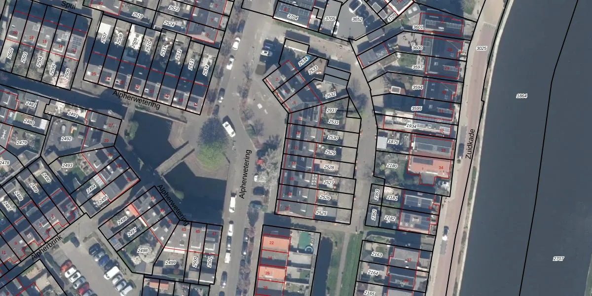 Alpherwetering 12 is gelegen op kadastraal perceel WDV01D2529. Deze kadastrale aanduiding is uniek en wordt gebruikt door het Kadaster om eigendomsrechten en andere zakelijke rechten vast te leggen. Het perceel maakt onderdeel uit van de kadastrale gemeente Waddinxveen.
