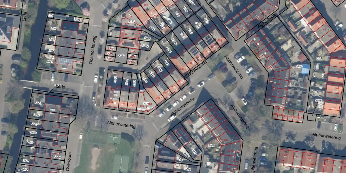 Gebruik de zoekbalk of klik op een perceel voor informatie over de adressen binnen dit perceel.