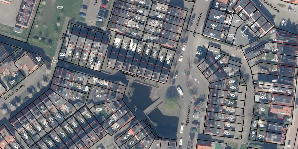 Alpherwetering 15 is gelegen op kadastraal perceel WDV01D2512. Deze kadastrale aanduiding is uniek en wordt gebruikt door het Kadaster om eigendomsrechten en andere zakelijke rechten vast te leggen. Het perceel maakt onderdeel uit van de kadastrale gemeente Waddinxveen.