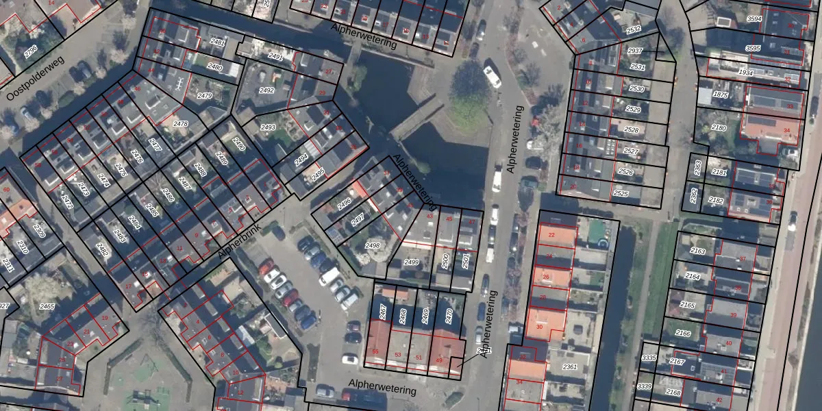 Alpherwetering 41 is gelegen op kadastraal perceel WDV01D2498. Deze kadastrale aanduiding is uniek en wordt gebruikt door het Kadaster om eigendomsrechten en andere zakelijke rechten vast te leggen. Het perceel maakt onderdeel uit van de kadastrale gemeente Waddinxveen.
