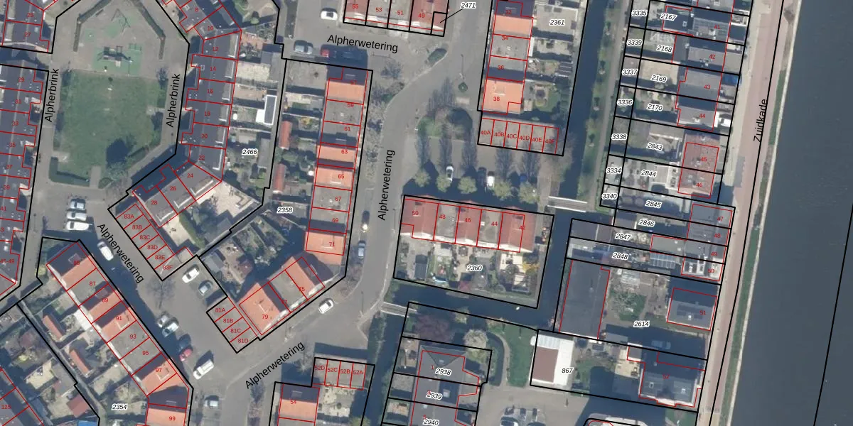 Alpherwetering 50 is gelegen op kadastraal perceel WDV01D2360. Deze kadastrale aanduiding is uniek en wordt gebruikt door het Kadaster om eigendomsrechten en andere zakelijke rechten vast te leggen. Het perceel maakt onderdeel uit van de kadastrale gemeente Waddinxveen.