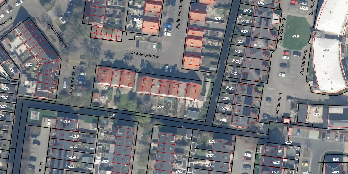 Alpherwetering 76 is gelegen op kadastraal perceel WDV01D2356. Deze kadastrale aanduiding is uniek en wordt gebruikt door het Kadaster om eigendomsrechten en andere zakelijke rechten vast te leggen. Het perceel maakt onderdeel uit van de kadastrale gemeente Waddinxveen.