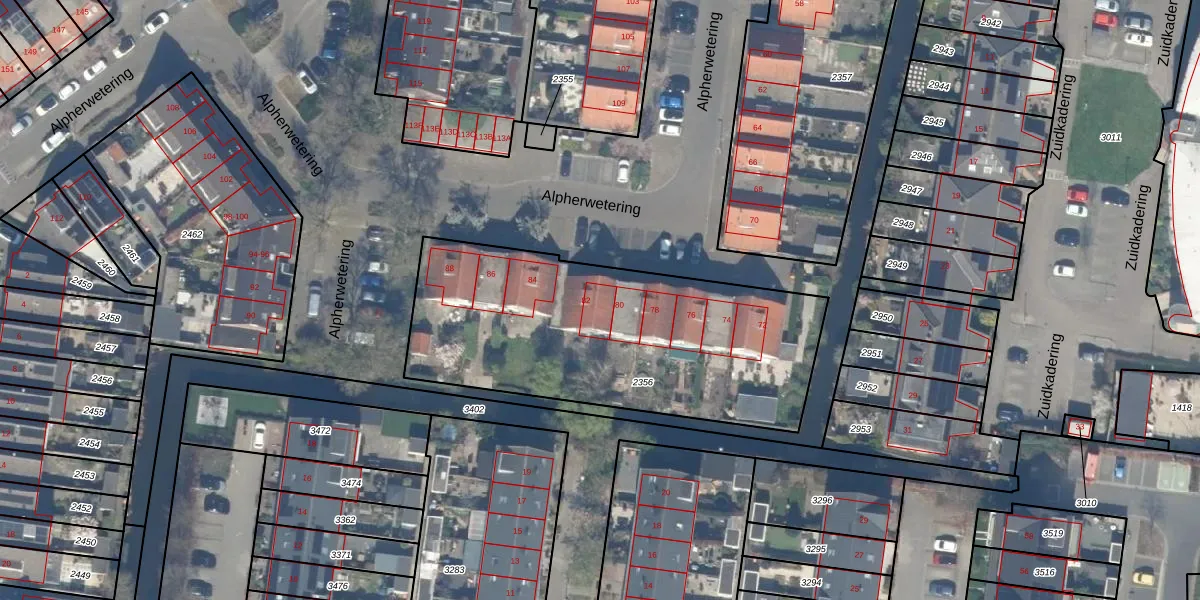 Alpherwetering 82 is gelegen op kadastraal perceel WDV01D2356. Deze kadastrale aanduiding is uniek en wordt gebruikt door het Kadaster om eigendomsrechten en andere zakelijke rechten vast te leggen. Het perceel maakt onderdeel uit van de kadastrale gemeente Waddinxveen.