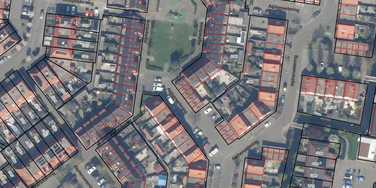 Alpherwetering 83-C is gelegen op kadastraal perceel WDV01D2466. Deze kadastrale aanduiding is uniek en wordt gebruikt door het Kadaster om eigendomsrechten en andere zakelijke rechten vast te leggen. Het perceel maakt onderdeel uit van de kadastrale gemeente Waddinxveen.